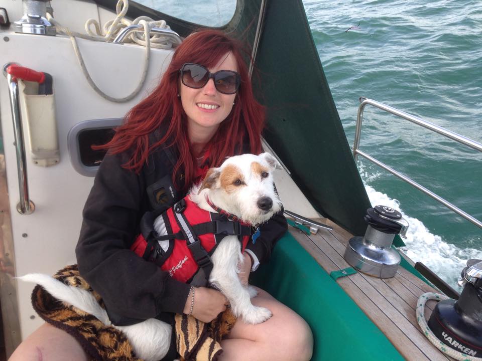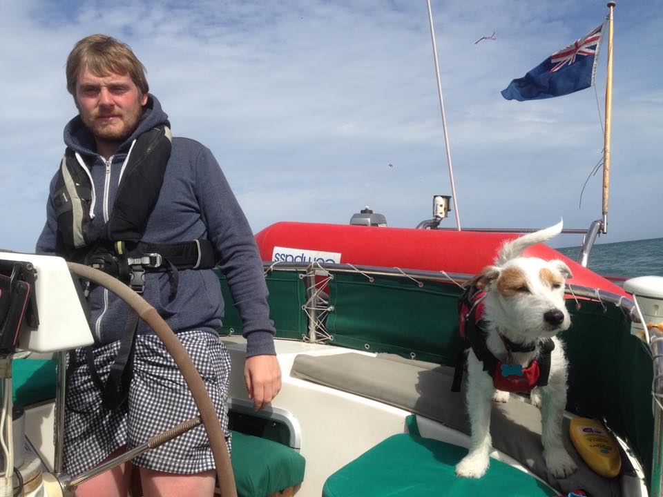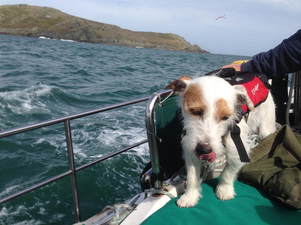 Sea state was disgusting coming out of the harbour into the channel (again!) I steered for a bit & then got sick of it so the man took over! We were starting to get a bit sick of being smashed around…. but finally the penny dropped & we put the main sail up to steady us. We still motored all the way to Plymouth, but did feel naughty for it, although I have now worked out a fairly comfy position for me and the dog so he is much more settled now ….& I wrapped him up in the leopard print blanket to keep him warm.