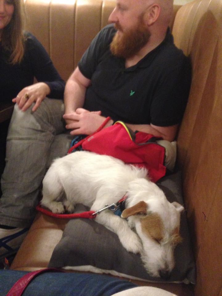 Also tested out our new pressure cooker, which was scarier than the sea state as we kept expecting it to explode! The following saying springs to mind ‘a watched pot never boils’ …..we watched it for blooming ages & it didn’t explode so we considered it a success! …. went to the pub to celebrate but the birthday boy was tired out & curled up to sleep on a cushion.