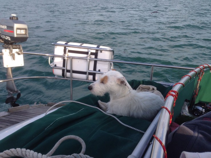 Aboard a cruising yacht the ‘Tudor Rose’, for a dogs life is never a race. His favourite place was the cockpit, where he could feel the wind in his face.
