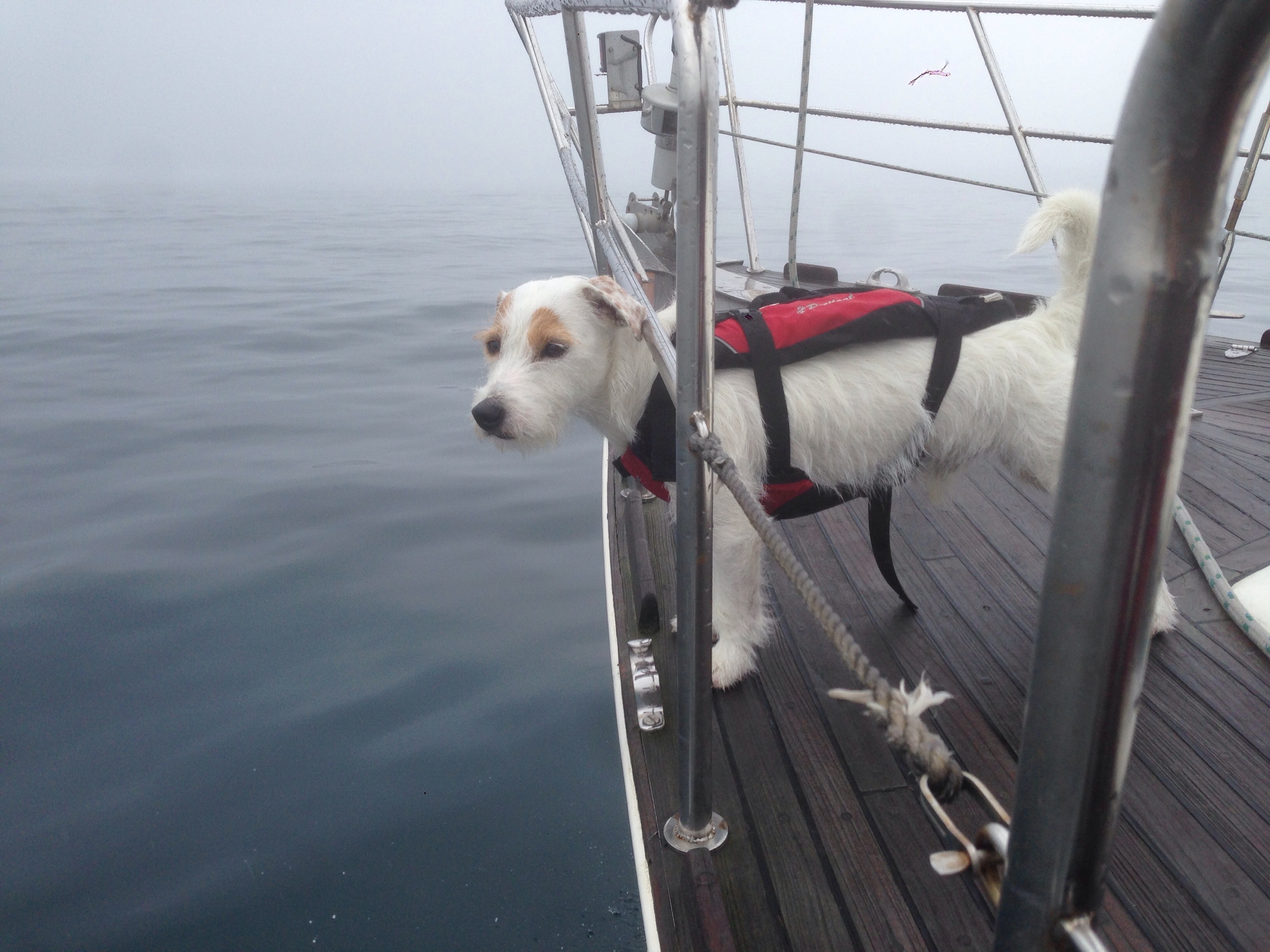 At first the long days were a struggle, but these are a thing of the past. For being a clever little sea dog he learnt how to pee up the mast.