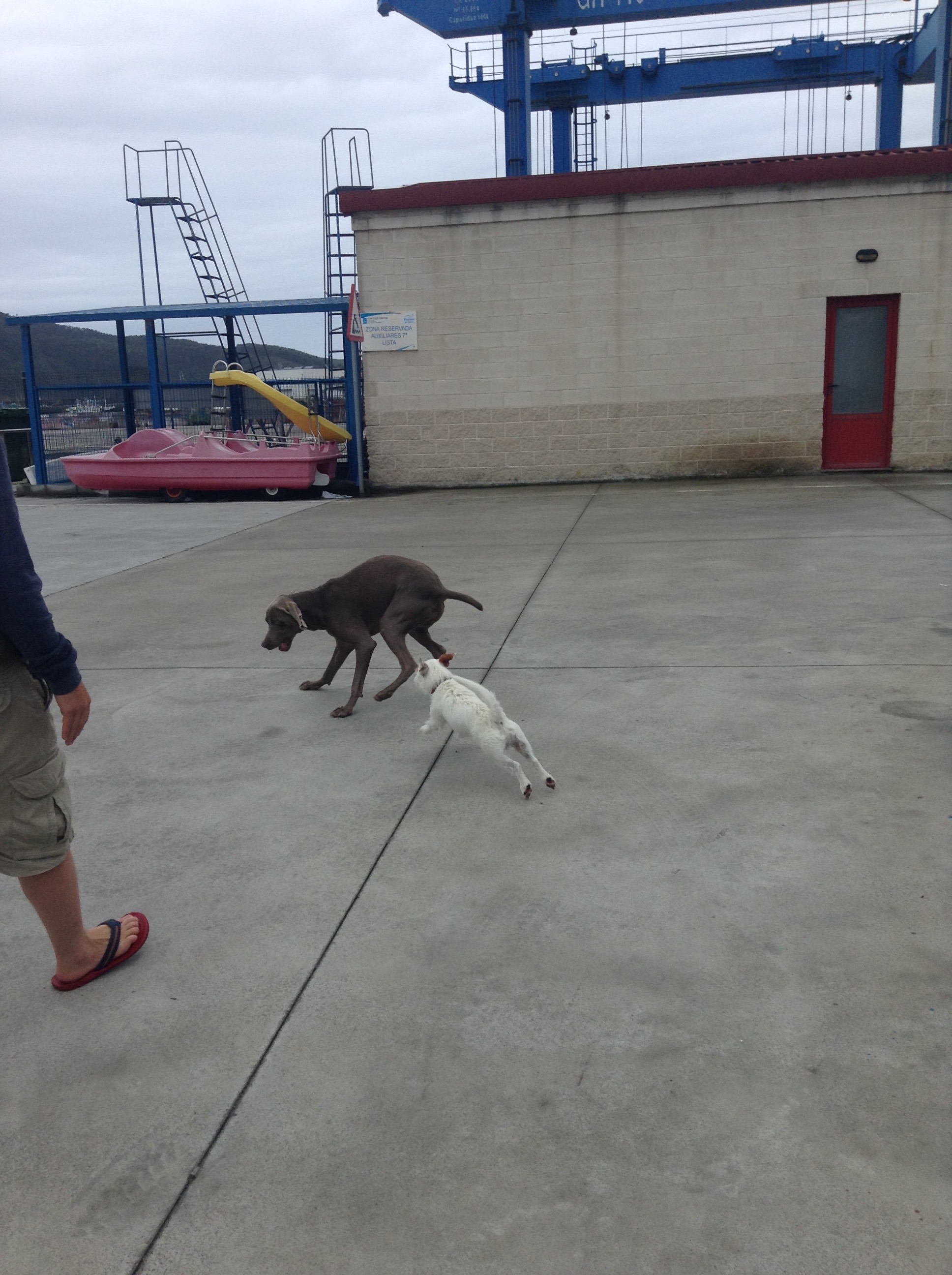 The winds had started to pick up through the night but only about 25-35 mile per hour so we still hadn’t felt the worst of it yet. It was a little rough but we were still able to get ashore. We were awaken by Peter on Channel 77 of the VHF radio at about 11am. He had lent us his tender the night before so Simon had to go and pick him up from the pontoon & drop him to his boat. This channel was soon to become the new social network of the Cedeira boating community and we used it to chat to both Peter & Kevin which was pretty handy. Once shore Simon disappeared for ages as apparently Peter had kidnapped him on a wild goose chase to find ‘Jose’ a local engineer who may have been able to fix our windless. After 1 hour Simon managed to escape a trip to the next town (to the chandlery) as Scrumps & me were still stuck on board and I needed to get ashore to walk him. A bit frustrating as Simon did need to go and get anchor chain but didn’t want to leave us high & dry either!