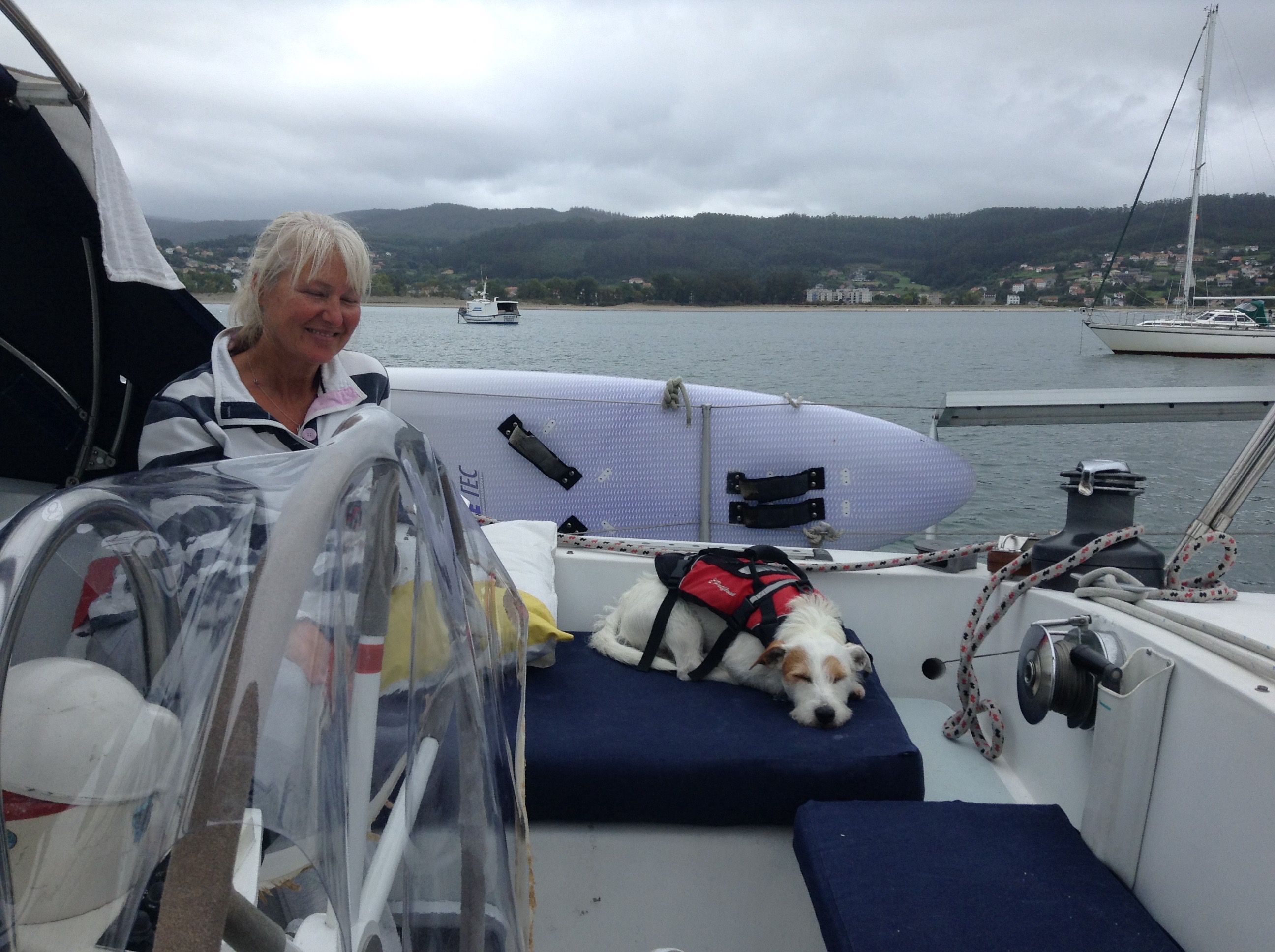 We really were very set on leaving today but it must have been Jacqui’s biscuits as 7 hours we were still on board with her and Freddie getting boating tips Cedeira Lesson No. 2: How to anchor….. Shavora style, sharing stories and putting the world to rights, but we did have to retire inside when yet more grey cloud & rain arrived!