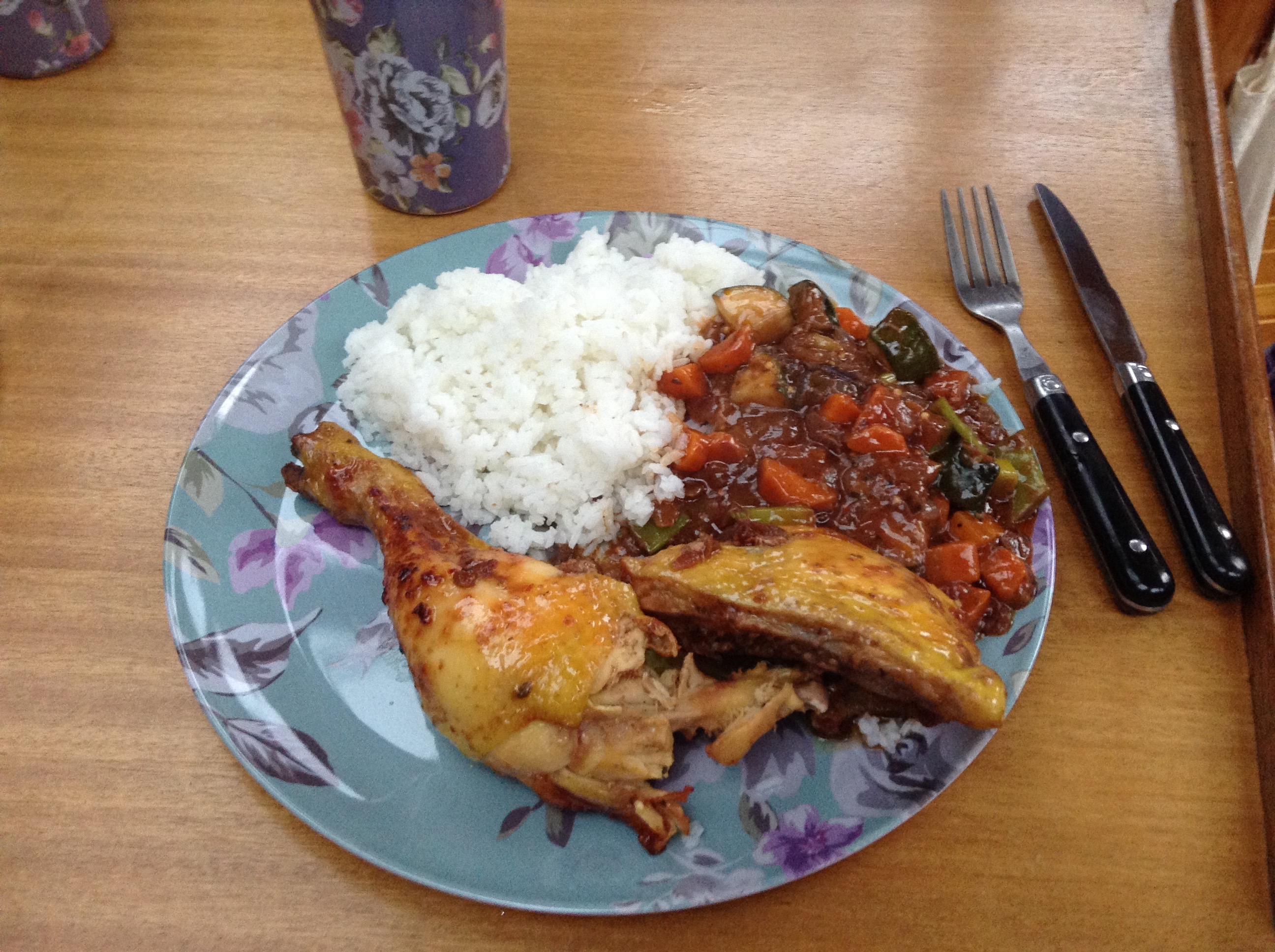 Later than that day things began to deteriorate Simon helped Peter tie his dingy & outboard on to his boat in order to protect them and gave him a lift back ashore in our pathetic dingy. Hose came on to look at the anchor windlass, but apparently the motor was accident & obsolete so they only way to fix it was to replace to whole windlass too. This was not an option for us as it just wasn’t worth the cost (I did my cost benefit analysis… for anyone like Larry reading this in the MOD :-)) and Simon could still manually use it. He needs to the exercise anywhere especially as our ‘Boat diet’ is yet to take place!!!! I cooked a nice big homely chicken casserole for dinner and then we walked Scrample Doodles (Tippy) along near the fishing ice factory & fishermans garages as it was closer than the local dingy pontoon. This is where we first got absolutely soaked, it started to drizzle when we left the yacht but as soon as we were ashore it was just tipping it down…….this was going to be a short walk!.