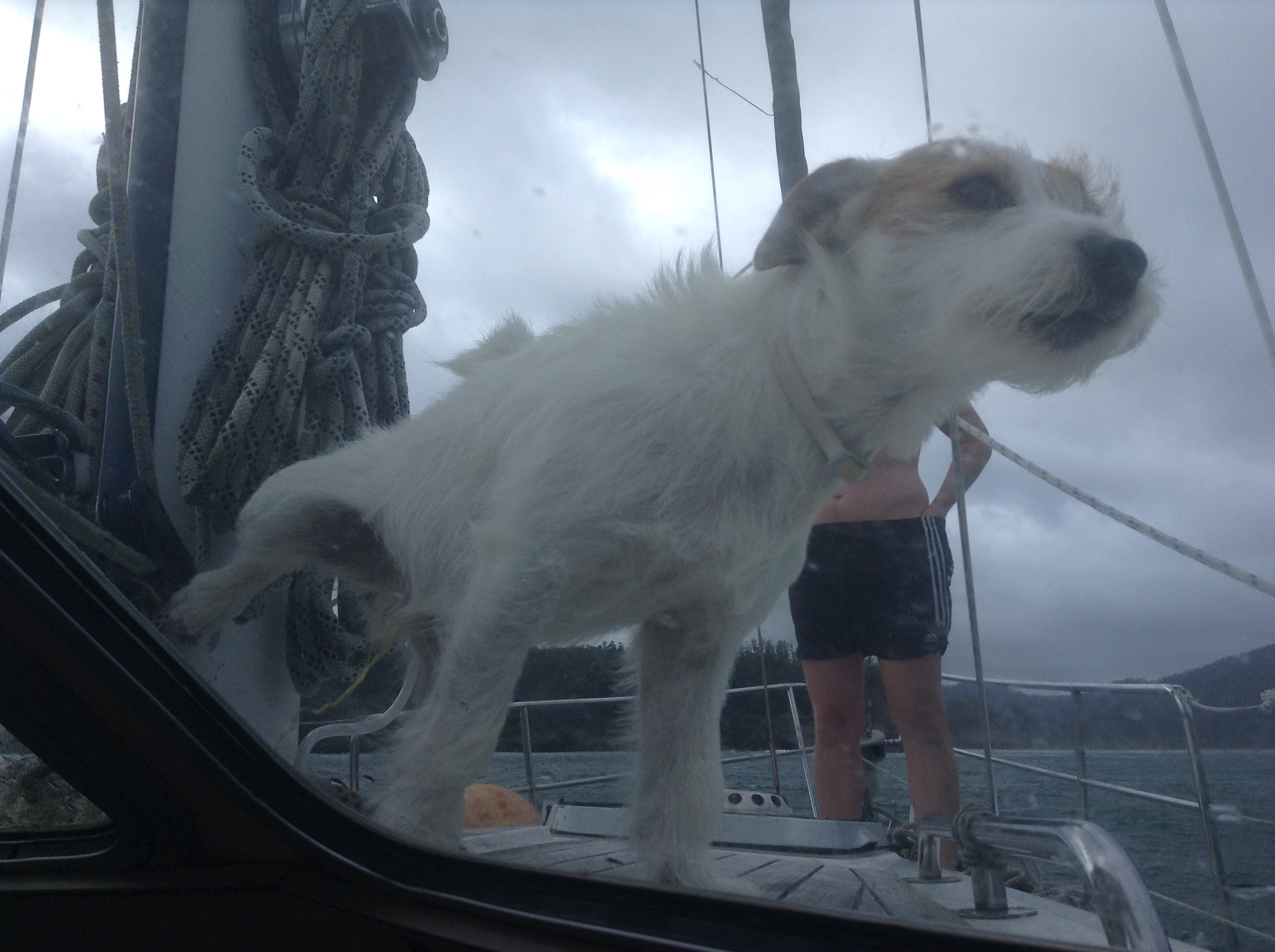 So we were on route back to the dingy, the rain started again & then the heavens literally opened and absolutely drenched us! We climbed into the dingy with our soaking wet shopping bags. The wind was directly in our faces battering us hard with giant drops of rain which felt like needles when they landed on your skin. Waves were relentlessly hitting the front of the dingy exploding and spraying into our eyes, the salt water stinging and blinding us. Sea water slopped over the sides down the back of our water proofs into our trousers. I was trying to hold on to the boat and the dog & wipe my eyes at the same time …. all while Scrumps tried to fight his way to the back of the dingy & under my arm in attempt to get some shelter. I even laughed at the time but by the time we got back onboard and under the awning we were like a bunch of cold, drenched, dirty, drowned rats then reality set in.  All I could think about was last Sept when I was working in Cape Town sat in my hotel room laying on a luscious soft cosy bed, wrapped in a crisp white fluffy dressing gown, with room service on route, hot water, a bath, a shower, a maid that came in to turn my quilt back at night & chocolates on my pillow…… and how far away I was from any of these comforts right now!!!!!. This was the lowest point for me so far on the boat & I spent most of the night in pensive silence.