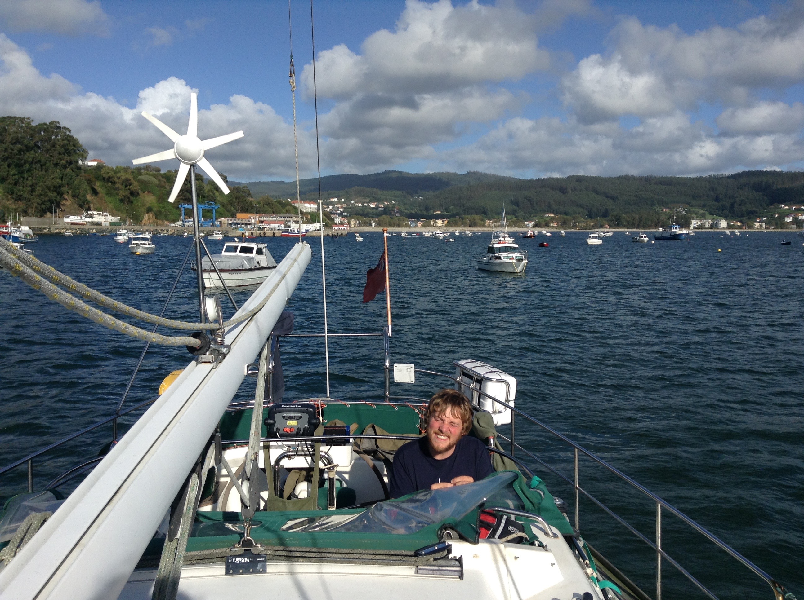 I didn’t get much sleep on the anchor and in between my all night bloody toilet visits (weak bladder syndrome!) I was waking up to check we weren’t being dragged towards the rocks or some poor local fishermans livelihood! By the time it was early morning I was flat out and slightly delirious and I was sure I could hear a big bird making weird squawking noises on the bow of the boat. Then I could have sworn that a little motor boat came by to scare it off for us but I didn’t worry about it too much as drifted back to sleep. When we finally arose Simon was a bit paranoid about the dingy so went to double check it was still tied on the swim platform ……. mmmmh …..the dingy was no longer there!!! I wonder if it was a hunch or if secretly Simon knew he tied a crap securing knot ….I thought better than to raise the question! Slightly bemused Simon looked across to Shavora and there tied on the back was Cumpy our dingy! Turns out the bird squawking was actually a little Spanish man on a horn trying to wake us up as he had found Cumpy drifting out into the Bay of Biscay way past the harbour wall! Freddie had also tried to wake us but we had both slept through his shouting.