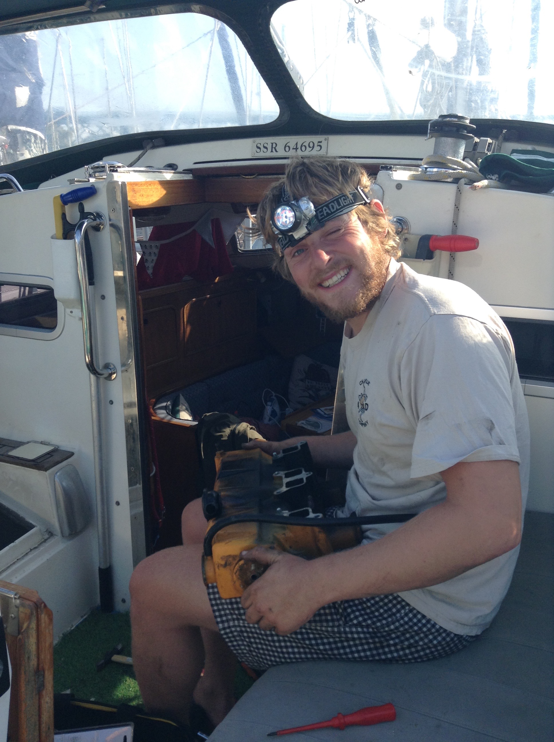 Portugal here we come and new day and a new country how exciting although it didn’t feel as exciting as crossing France to Spain but I think this is because it was only a short sail past a river that boarders both countries so it didn’t seem as significant. Unfortunately with once again no wind we had to motor the majority of todays passage, another 35 miles. We had vowed to not use the motor and only go on passages in good winds, but with a deadline to reach Lisbon looming so we could meet Holly’s friend Michelle, we had to get some good old miles under our belt. The problem was, the insignificant second small hole, was now filling the boat with exhaust fumes even more than before. We spend the passage pretty much with our heads over the side of the boat in the fresh air to stop choking ourselves to death. I spent the afternoon on the phone again to the engine manufacturer who gave me some good tips for fixing the second hole as this was a more complex job, but once again this would have to wait until we were comfily in a marina. It was a lovely sunny day and Holly got in a good few hours topless sunbathing on the privacy of the cockpit. We rounded the breakwater to Castelo and pushed up the river, making our way into the Marina for another maintenance stop. We arrived early evening so had to make a quick dash to the chandlery for supplies so that I could crack straight on with the repair the following day, we had to wait until the engine was cool enough to take apart anyway. Gasket paper was top of the list, but unfortunately it was like gold dust not even the local car garages had any. However we were given some alternative options by a former colleague of Holly’s, thanks Angus, but it turned out that we didn’t need in the end anyway as the engine had re-useable metal gaskets! The first full day was spent with the huge help from Michael Johnson back on the end of a phone in the UK, taking the exhaust and cooling system of the engine apart, I know what your all thinking..…how the F**K could I do that…..well I thought the same but somehow it worked. I managed to seal and reinforce the manifold with the corrosion, the hard thing now was the 24 hour wait until it is dry to be able to fire up the engine to test it….fingers crossed.