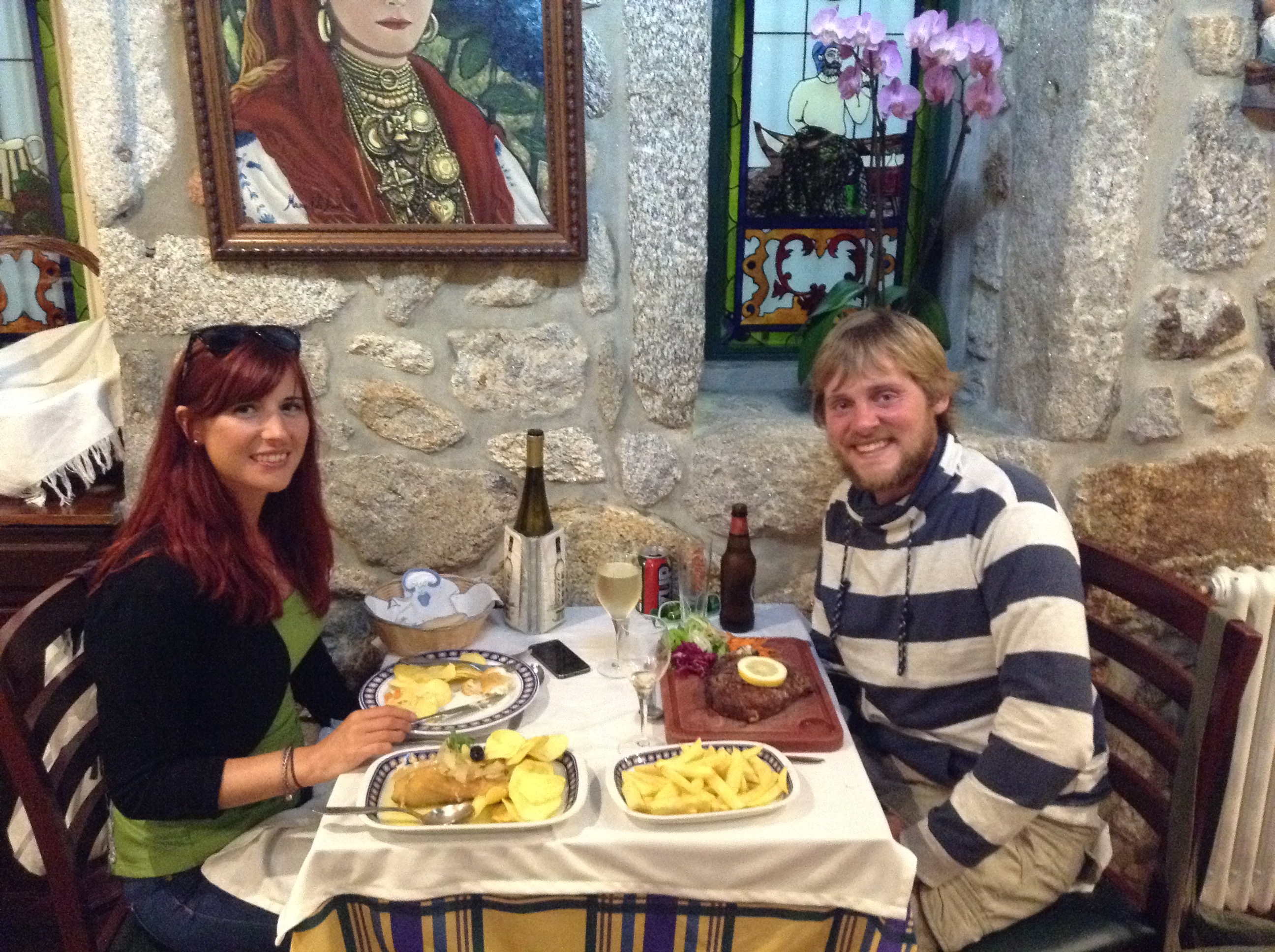 Whilst we waited we spent the evening realising how much better Portugal is than Spain, its cheaper, better shops, better sail winds (so we’ve been told!), calmer seas, nicer food, and better restaurants….. well to be honest its a bit more like home compared to Spain so thats probably why. On finding a lush butchers we could eat kebabs and pork schnitzel until our hearts content for a 3rd of the price of else where. Holly even tackled the weekly food shop on her own, overcoming her fear of asking foreign shop workers for assistance, and managed to get the wheel barrow sized load of shopping back to the boat solo. Unlike the UK all the supermarkets have a butchers counter and if you want minced meat etc you have select the cut of meat & get them to mince it, this is brilliant as its all lovely and fresh but pardon my French …your fucked if they don’t speak any English. We treated ourselves to another disappointing tea in a restrauant…..shame as we saw so many nice restaurants but think we just made some fundamental mistakes with our selection and ordering.